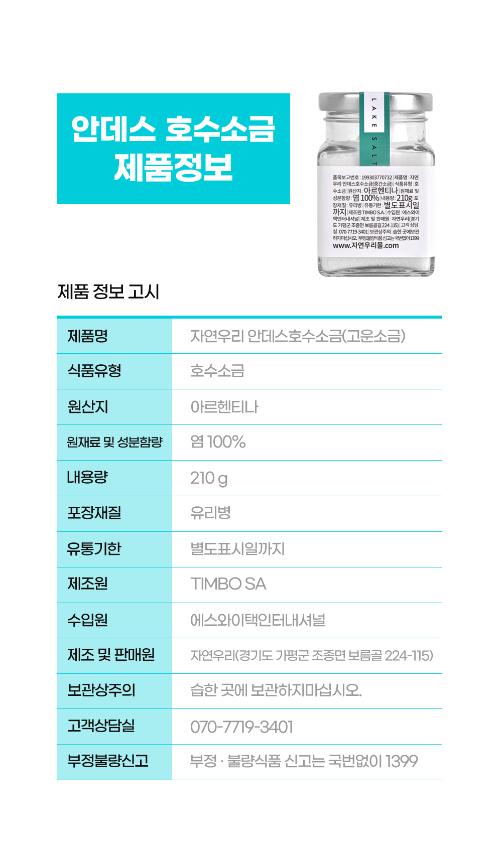 ✔상품구성 안데스소금(210g) + 손잡이상자